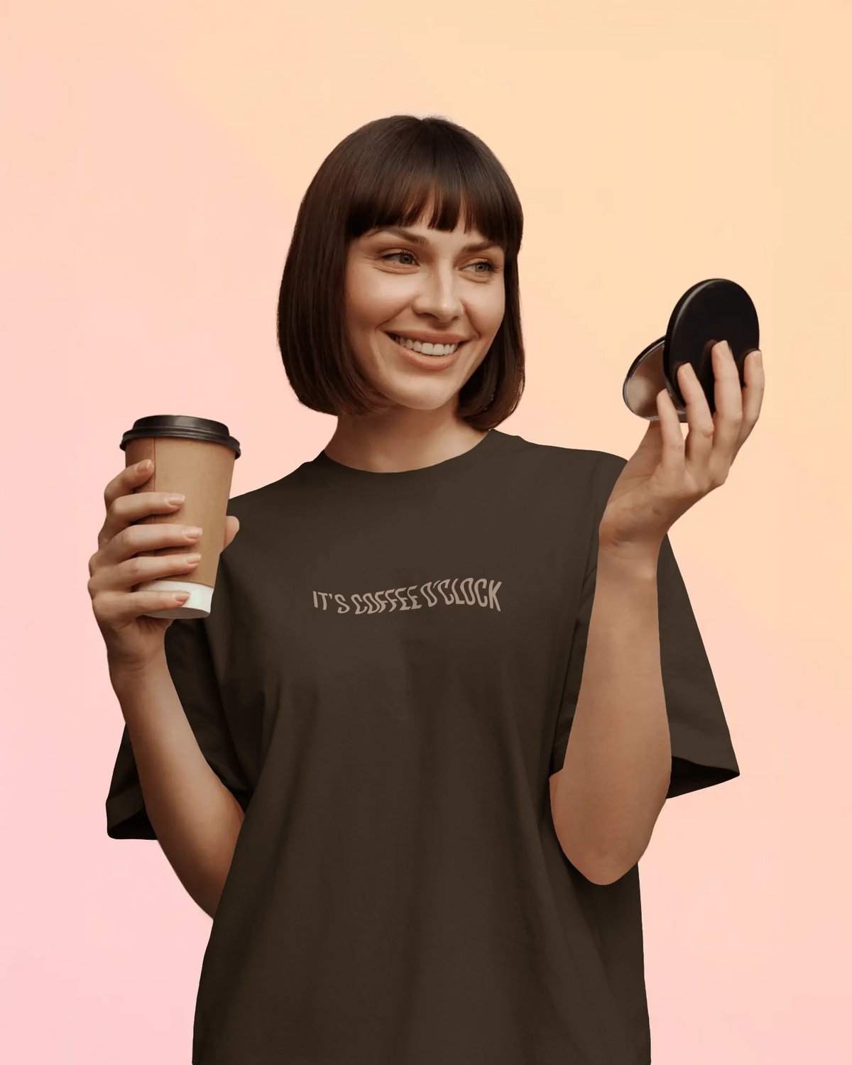 For the ones who treat every cup like a sacred ceremony. The Coffee Ritual Tee captures that morning magic rich mocha tones, a cheeky “recipe” for daily chaos, and a back print that celebrates your caffeine devotion. The front quietly declares, It’s Coffee O’Clock, because honestly, when isn’t it? Perfect for slow mornings, cafe runs, and anyone whose bloodstream is 80% espresso.